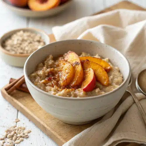 There you have it—my absolute favorite way to turn a handful of peaches and some humble oats into a breakfast worth waking up for. This Spiced Peach Oatmeal has saved me on so many frantic weekday mornings and has been the star of plenty of lazy weekend brunches. It’s simple, it’s wholesome, and it really does taste like a big, warm hug. I hope you give this recipe a try, and if you do, I’d love to hear how it turned out for you. Grab a cup of coffee, cut yourself a generous slice, and enjoy every single bite. Happy baking!
