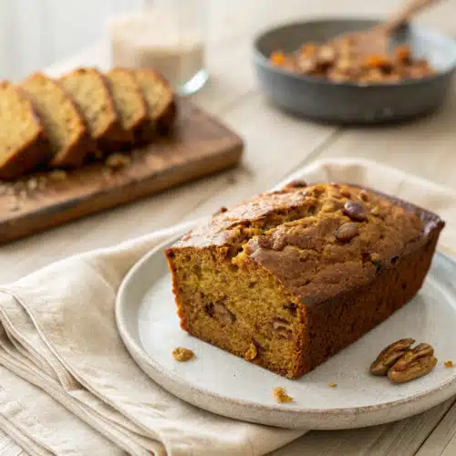 Before we get our hands dirty, let’s do a quick rundown of what to expect. This recipe takes about 15 minutes of active prep time. You’re just mashing bananas, whisking wet ingredients, folding in the dry ingredients, and tossing it into a loaf pan. The oven does the heavy lifting for about 55 to 65 minutes. You’ll know it’s done when your entire house smells like a high-end bakery in the middle of October. It yields one standard 9×5-inch loaf, which gives you about 10 generous slices depending on how thick you cut them.