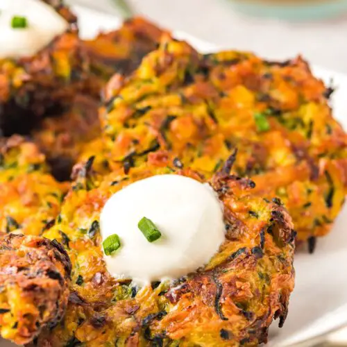 If you happen to have leftovers, you are in luck because these store wonderfully! Place any cooled leftover zucchini fritters into an airtight container or a food storage bag. They will stay fresh in the refrigerator for up to 5 days.