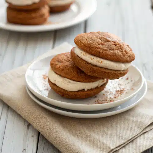These Apple Cider Whoopie Pies are incredibly rich and flavorful on their own, but pairing them with the right drink takes the experience to a whole new level. I absolutely love serving these with a steaming mug of hot black coffee or a spicy chai tea latte; the bitterness of the coffee and the spices in the chai cut through the sweetness of the cream cheese filling perfectly. If you are serving these to kids (or if you just want to double down on the fall vibes), a warm mug of extra apple cider with a cinnamon stick stirrer is an absolute must. For a fun dessert spread, you can even serve them alongside a scoop of vanilla bean or caramel swirl ice cream!