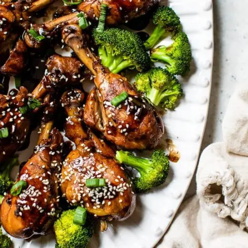Freezer Instructions: You can freeze fully cooked drumsticks for up to 2 months. Thaw overnight in the fridge, reheat in a 350°F (175°C) oven for 10–15 minutes to warm through, then give them a quick glaze kiss under the broiler for 1–2 minutes to re-crisp the surface.