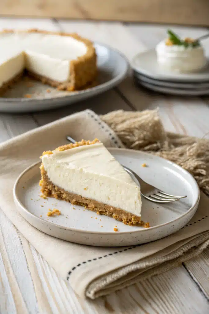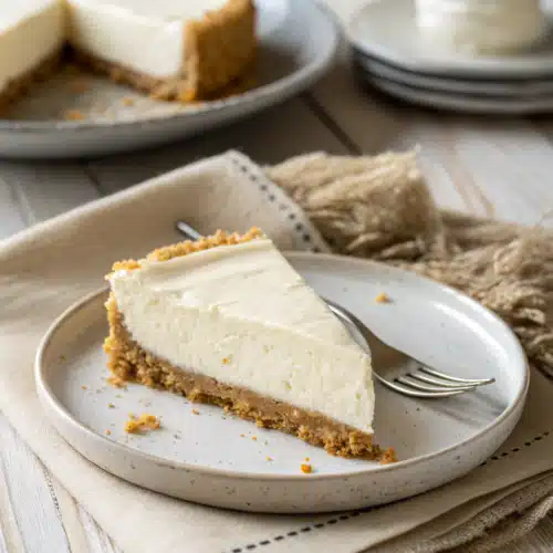 The crust is just as simple. We use a classic buttery graham cracker base that simply chills until firm, skipping the pre-bake step entirely. Because there are no eggs involved, the texture is slightly lighter and airier than its baked cousin, almost like a beautiful cross between a traditional cheesecake and a rich, fluffy mousse. It is wonderfully refreshing, incredibly rich, and completely foolproof.
