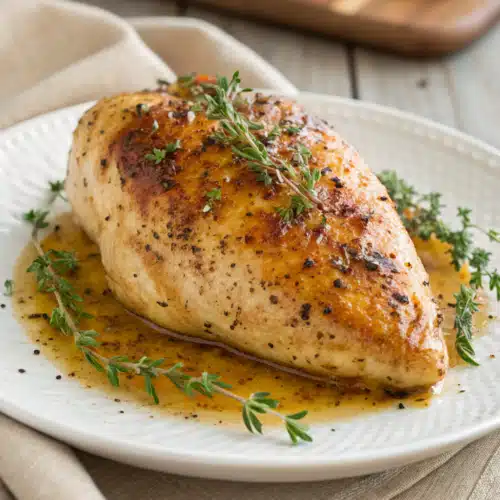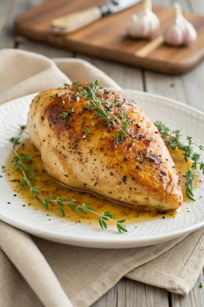 Because this baked chicken breast is so incredibly versatile, it pairs beautifully with almost anything. If you want a comforting, classic dinner, serve it alongside some creamy garlic mashed potatoes and buttery roasted green beans. For a lighter, summery vibe, I love slicing it thin and laying it over a huge Caesar salad or a fresh spinach and strawberry salad with a tangy balsamic vinaigrette.