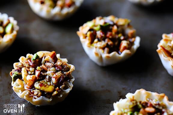 Phyllo Prep: Keep phyllo covered as you work. It dries out fast, and once it’s dry, it becomes brittle. If you must, brush a tiny bit more melted butter onto any dry sheets to rehydrate them slightly before pressing into the cups.