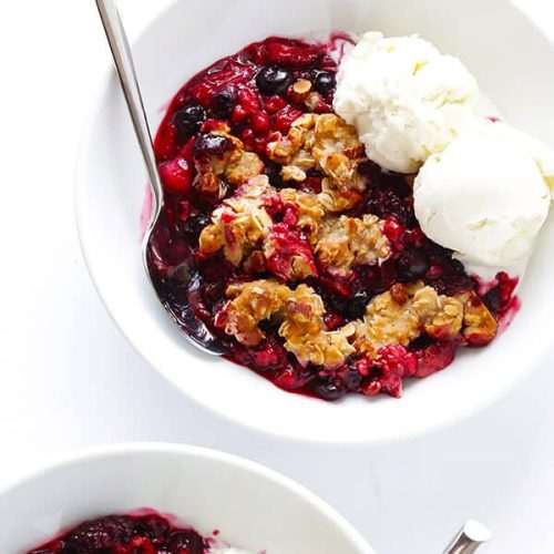 Freezer Instructions: Freeze baked berry almond crisp, tightly wrapped, for up to 2 months. Thaw overnight in the fridge and rewarm in a low oven until bubbling and the topping regains some of its snap. If you’re freezing unf baked berries with crumble, freeze in layers so you can bake portions as needed.