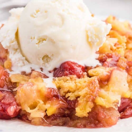 This cherry pineapple dump cake is pretty much a standalone star, but if you want to take it to the next level, here are a few ideas! For breakfast or brunch, I sometimes serve a smaller portion with a dollop of Greek yogurt and a sprinkle of granola for a sweet start to the day. It feels almost like a treat but with a little added protein to keep you going. As a dessert, it’s absolutely divine with a scoop of vanilla bean ice cream – the classic pairing for a reason! A drizzle of caramel sauce can also be a lovely addition if you’re feeling extra indulgent. For a cozy snack, I often enjoy a slice with a warm cup of coffee or tea. The sweetness of the cake pairs beautifully with the slight bitterness of coffee or the warmth of tea. It’s also wonderful with a glass of milk for the kids (and me!). My family loves it when I serve it alongside fresh berries during the summer – it adds a bit of freshness and color to the plate.