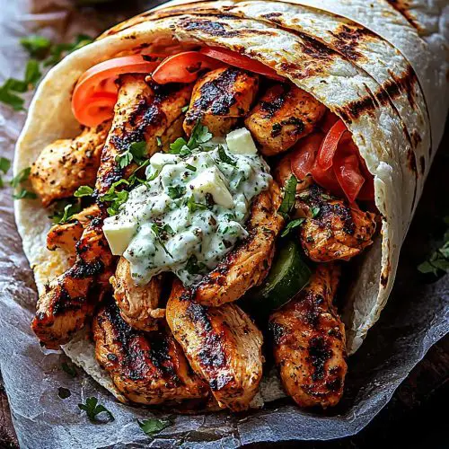 Slice the chicken into thin, generous ribbons. Pile them on the prepared pitas, drizzle with extra tzatziki if you like, add a few more veggies, and fold or wrap. My kids actually ask for seconds every time, and I’m not ashamed to admit it disappears in minutes at my house. The first bite should be bright, the middle mouthful should feel comforting, and the last bite should leave you thinking about the next round.