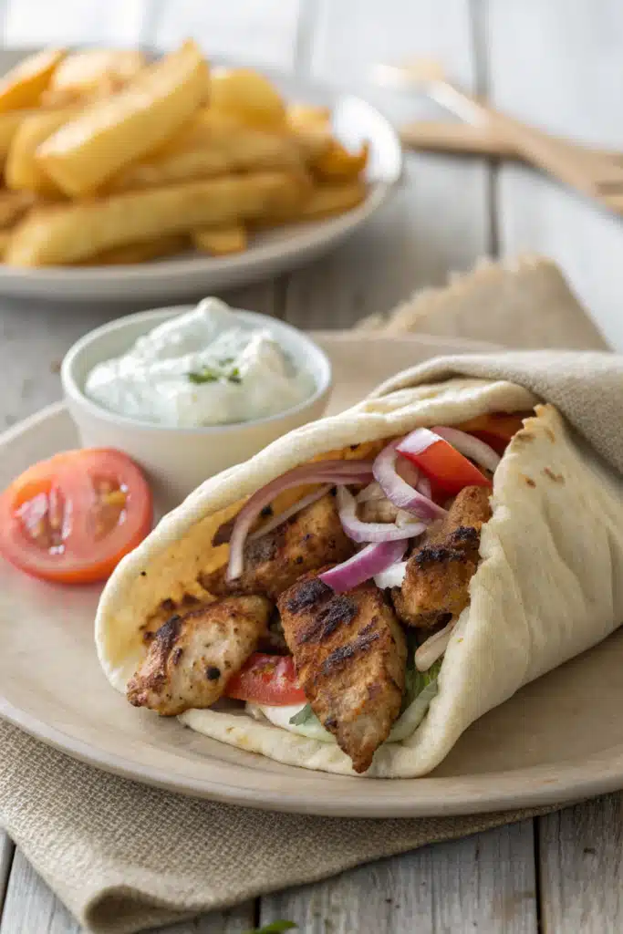 While these gyros are definitely a meal entirely on their own, I love pairing them with a few classic sides to make it feel like a true Greek feast. The absolute best, most authentic addition is a handful of hot, salty french fries tucked right inside the pita with the chicken. It sounds a little crazy if you’ve never tried it, but the crunch of the fries against the cool tzatziki is out of this world.