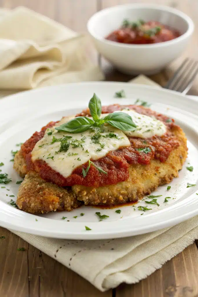 Secondly, we need to talk about the cheese-to-sauce ratio. I’ve found that drowning the chicken in a swimming pool of marinara is the quickest way to ruin a good cutlet. Instead, we apply a modest, flavorful layer of sauce right in the center, leaving the edges exposed so they stay wonderfully crispy even after baking. Then, we use both fresh mozzarella for that irresistible, stretchy melt, and aged parmesan for a sharp, salty bite that elevates the whole dish.