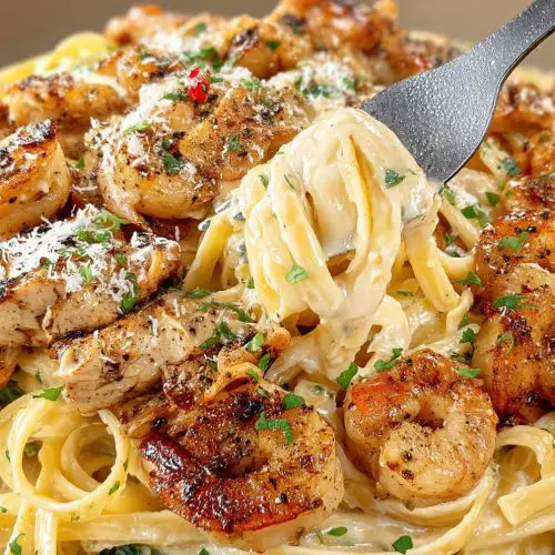 Chicken Shrimp Alfredo is one of those recipes that feels like a warm invitation to slow down and savor, even on a hectic weeknight. The two proteins bring different textures to the plate, while the rich, glossy sauce ties everything together in a hug of comfort. It’s not just about indulgence — it’s about balance: a little indulgence, a little practicality, and a lot of love. I’ve shared this with friends who bring a bottle of wine and a smile, and they always leave saying they’ve found a new “sker” for the week’s dinner rotation. If you’re craving something creamy, comforting, and deeply satisfying, this is your dish. As you try it, I’d love to hear how you customize it — maybe a squeeze of lemon for brightness, or a handful of sautéed mushrooms for earthiness. Either way, you’re going to wind up with a dish that feels personal, homey, and totally timeless. Happy cooking!