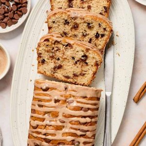 This Cinnamon Chocolate Chip Swirl Coffee Cake is so wonderfully versatile, it fits into almost any meal or occasion! For a classic breakfast, it’s absolutely divine paired with a steaming mug of your favorite coffee. The richness of the cake and the bitterness of the coffee are a match made in heaven. You could also serve it with a side of fresh berries for a little brightness.