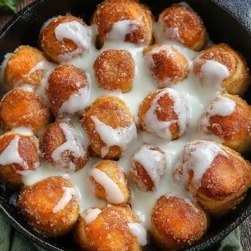 - Drizzle the glaze over the warm cinnamon roll bites.