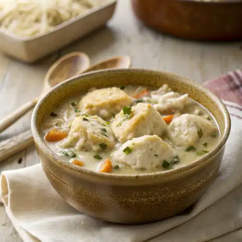 Finally, this recipe is incredibly forgiving. Your dumplings do not need to be cut into perfect, identical squares. In fact, the rustic, uneven shapes are exactly what give this dish its homemade charm. The broth comes together naturally, and the whole house will smell absolutely heavenly while it simmers on the stove. It is the kind of meal that brings everyone into the kitchen asking, “When is dinner ready?” You will love the process just as much as the final, delicious result.