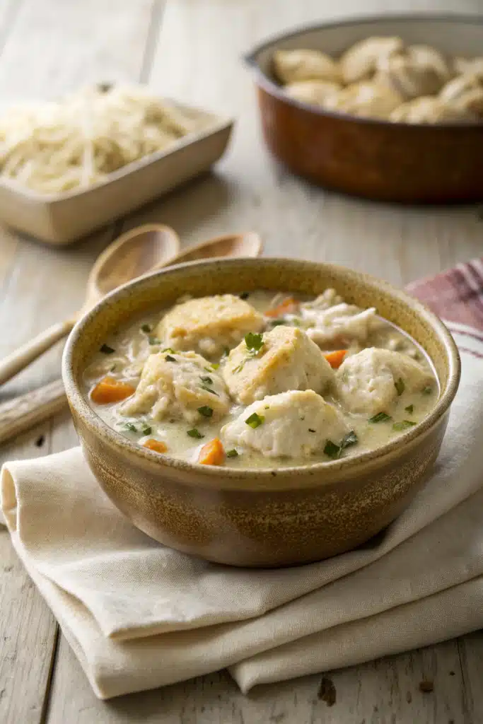 Another reason you will fall head over heels for this dish is how incredibly budget-friendly it is. We are talking about basic, inexpensive ingredients: flour, milk, butter, and chicken. By simmering your own chicken to make the broth, you are stretching your grocery dollars while getting maximum flavor. It is a fantastic way to feed a hungry crowd without breaking the bank. Plus, there is a deep sense of satisfaction that comes from rolling out your own dumpling dough. It makes you feel like a true homestyle chef, even if you are a total beginner in the kitchen.