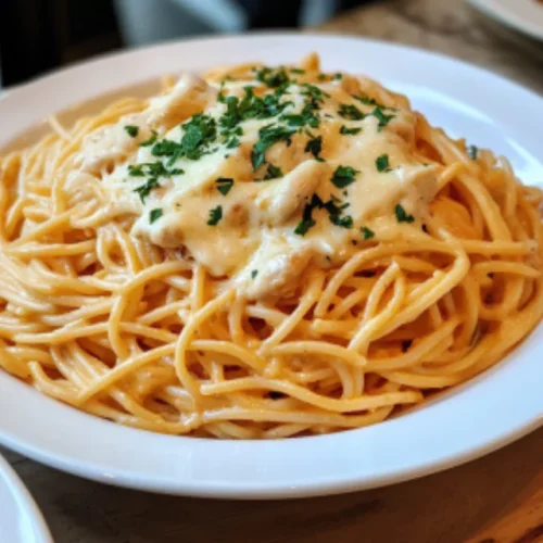This crockpot chicken spaghetti is pretty much a meal on its own, a glorious symphony of comfort that stands proudly at the center of the table. But if you’re feeling like adding a little something extra, I’ve got a few ideas that pair beautifully. For a simple weeknight dinner, a crisp green salad with a light vinaigrette is perfect. It cuts through the richness of the spaghetti and adds a refreshing counterpoint. Sometimes, we just grab some garlic bread from the grocery store bakery or whip up some quick cheesy garlic bread at home – who can resist that combo? If you’re serving this for a more casual gathering or a potluck, a big bowl of steamed broccoli or green beans is always a welcome addition. My kids also love it with some baby carrots on the side. For a real treat, especially on a colder evening, a hearty cup of tomato soup alongside it feels incredibly nostalgic and comforting. It’s like a grown-up version of childhood favorites. Honestly, the beauty of this crockpot chicken spaghetti is its adaptability. It’s forgiving and delicious no matter what you pair it with, but these little extras can elevate it from a simple dinner to a full-on feast.