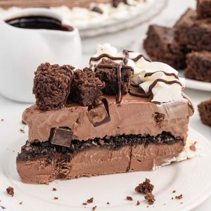 - Soften the hot fudge sauce in the microwave for 15 seconds. Stir well before spreading over the chocolate ice cream layer.