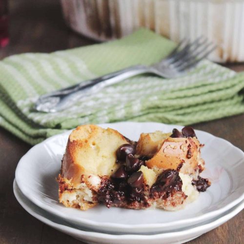 Swirl Customization: The swirl is purely for aesthetics, but it does help distribute the chocolate a bit. Don’t overthink it. Just a gentle swirl with a butter knife or even the back of a spoon will create lovely pockets of melted chocolate. You can even just sprinkle the chocolate on top if you’re short on time; it will still melt beautifully into the pudding as it bakes.