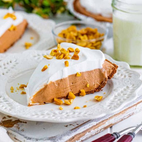 This is the moment we’ve all been waiting for! To get clean slices, run a sharp knife under hot water, wipe it dry, and then slice. Repeat for each slice. This helps the knife glide through the pie smoothly. Serve chilled. A little extra whipped cream or a few chopped peanuts on top never go amiss. Enjoy every single decadent bite!