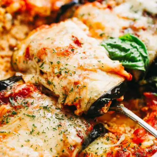 Pop the baking sheet into your preheated oven. We’re going to bake these for about 20-25 minutes. You’re looking for the eggplant to be fork-tender and the breadcrumb topping to be golden brown and crispy. The exact time will depend on your oven and the thickness of your eggplant slices, so keep an eye on them towards the end.