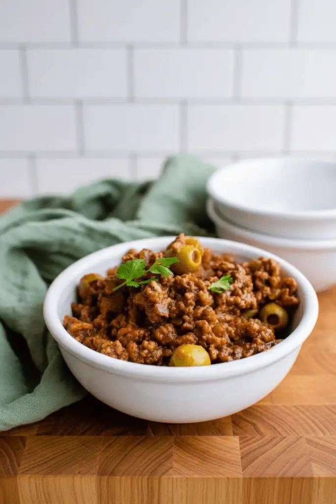 Once the picadillo is perfectly simmered and thickened slightly, turn off the heat completely. Gently fold in your green olives with pimentos. Serve this gorgeous, savory beef mixture generously over warm rice, and sprinkle some fresh chopped cilantro on top if you like a little pop of green. Enjoy every single bite!