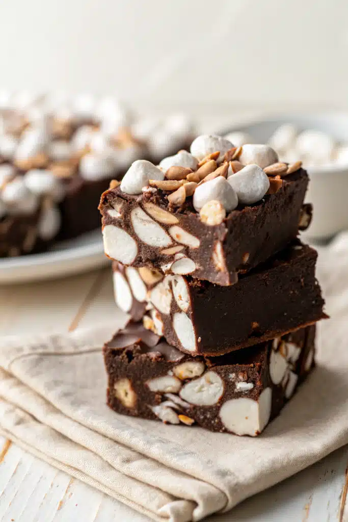 Don’t be afraid to make it your own by swapping the nuts or tossing in a handful of M&Ms or chopped peanut butter cups if you are feeling adventurous. If you decide to give this recipe a try, I would love to hear how it turns out for you. Grab your ingredients, have fun with it, and enjoy every single chocolatey, marshmallowy bite!