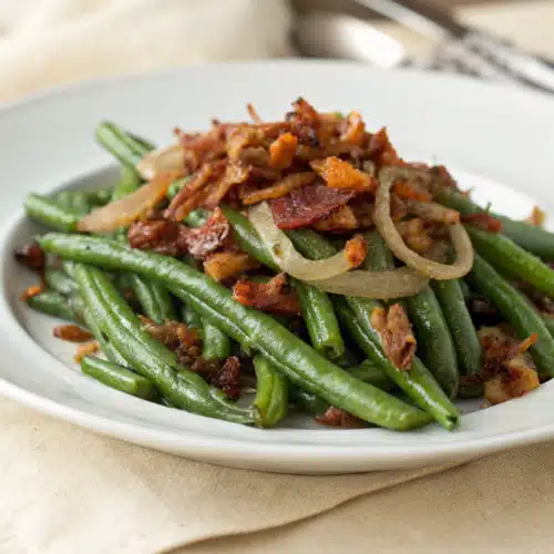 Have you ever taken a bite of a side dish and been instantly transported back to your grandmother’s kitchen? That is exactly what happens every single time I make these vintage green beans. I am talking about the kind of green beans that have simmered low and slow until they are melt-in-your-mouth tender, soaking up all that incredible savory goodness from crispy bacon and sweet onions. We aren’t doing crisp-tender modern veggies today, my friend. We are going old-school.