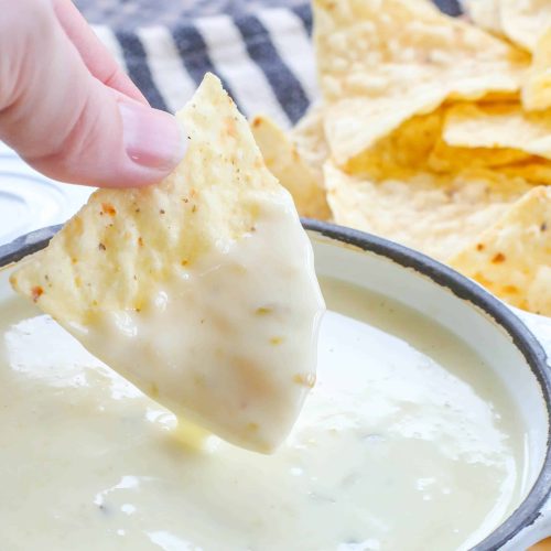 Grab your favorite dippers and dig in! This white cheese dip is seriously addictive. I always make way more than I think we’ll need because it disappears so fast.