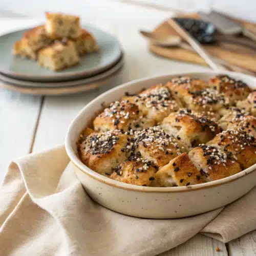 It takes all the iconic, mouth-watering flavors of your favorite breakfast order and bakes them into one bubbly, golden, comforting dish. No waiting in line, no individual assembly required. Whether you’re hosting a holiday brunch, feeding a house full of hungry teenagers, or just want to meal-prep decadent breakfasts for the week, this everything bagel casserole is an absolute lifesaver. Grab your coffee, get cozy, and let me show you how to make your new favorite morning meal.