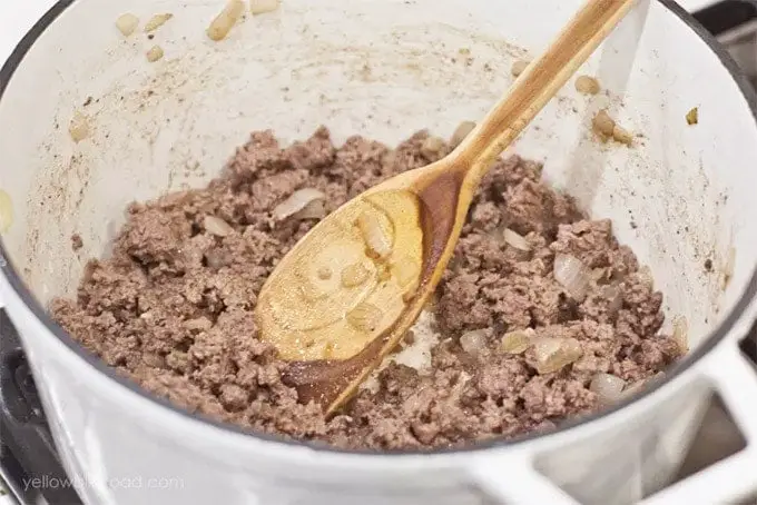 - Use a meat chopper: If you don’t have one of those handy little handheld meat mashers, get one! It breaks the beef down into perfectly uniform pieces much faster than a regular spoon.