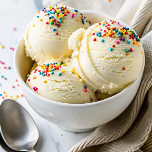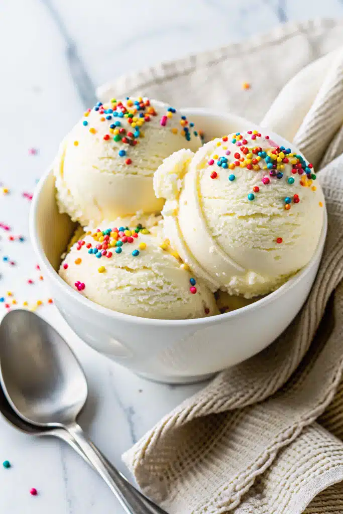 Lastly, keep an eye on your freeze time. Two to three hours is the sweet spot for a soft-serve consistency. If you leave it in the freezer overnight, it might freeze pretty solid because of the lower fat content. Just let it sit on the kitchen counter for about 10 to 15 minutes before you try to scoop it. It’ll soften right up!