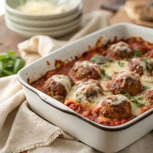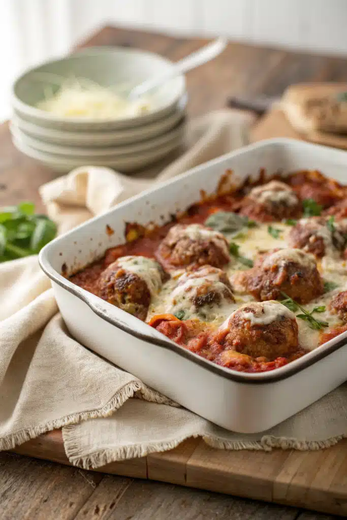 I also love how customizable it is. While I’m sharing my absolute favorite way to make it, you can easily tweak it to fit your family’s tastes. Swap out the standard beef meatballs for turkey or chicken meatballs if you prefer something a little lighter. Throw in a handful of fresh spinach between the cheese layers to sneak in some greens, or add a pinch of crushed red pepper flakes to the sauce if you like a little kick. It’s practically foolproof. The oven does all the heavy lifting, transforming incredibly simple, basic ingredients into a comforting, bubbling dish of pure joy. Trust me, once you pull this golden, cheesy masterpiece out of the oven, it’s going to become a permanent fixture in your weekly meal rotation.