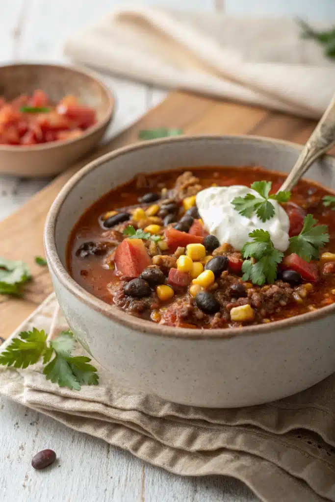 For the bowls themselves, a generous dollop of sour cream is a must to add a creamy, cooling contrast to the spiced broth. We also love a heavy sprinkle of shredded sharp cheddar or Monterey Jack cheese, some freshly diced avocados, a squeeze of fresh lime juice, and a handful of chopped cilantro. Trust me, the fresh toppings really elevate the canned ingredients and make it taste like a restaurant-quality meal!