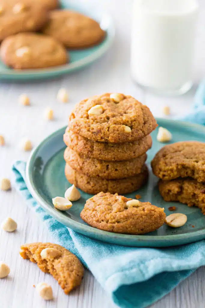 I also love how forgiving they are. Want to skip the white chocolate? Swap in dark or milk chocolate chips. Prefer no nuts? Use sunflower seed flour instead of almond flour—just add a splash of lemon juice to balance things out. And if you’re not wild about white chocolate at all? Skip it entirely! These cookies shine even without it, thanks to that robust pumpkin-spice blend.