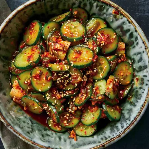 Glaze Variations: For a citrusy glaze, add a few drops of yuzu or lime juice. For a sweeter glaze, increase honey to 1 1/2 teaspoons and balance with a splash of rice vinegar. If you like heat, a little extra gochugaru or a sliced jalapeño can amp up the kick without stealing the cucumber’s voice.