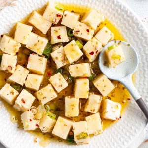 When you’re ready to serve, carefully remove the cheese from the marinade. You can serve it as is, or let it sit at room temperature for about 30 minutes before serving to take the chill off and enhance its texture. Reserve the marinade! It’s liquid gold and can be used for so many things.