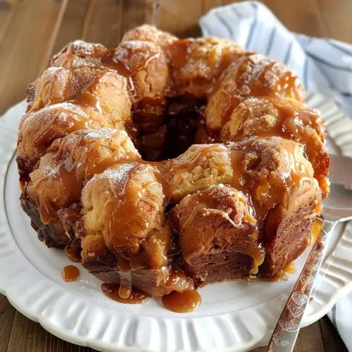 Over the years, I’ve picked up a few tricks that I think make this monkey bread recipe even better, and I want to share them with you! For the biscuit prep, I’ve found that cutting the biscuits into four pieces is the ideal size – not too big, not too small. If you use the flaky layers kind, just gently separate them into the layers *before* cutting, then cut each layered piece into four. For mixing advice, the key is to coat each biscuit piece thoroughly in the cinnamon sugar. Don’t be shy! A good coating means maximum flavor. Also, try not to overwork the biscuit dough when you’re cutting and coating it; we want that tenderness to come through. When it comes to the swirl customization (though this recipe is more of a layered bake than a swirl), if you wanted to add things like chopped nuts, I’d mix them directly into the cinnamon sugar before coating the biscuits. For ingredient swaps, I’ve actually experimented with dairy-free butter, and it works quite well, though the caramelization might be slightly less rich. I haven’t tried it with vegan butter substitutes that have a higher water content, so stick with a good quality vegan butter stick for best results. Baking tips: Always use a baking sheet under your Bundt pan, just in case! It will catch any bubbly overflow and save you a mess. If your oven tends to run hot, keep an eye on it and consider reducing the temperature by 10-15 degrees. The doneness test is key: it should be golden brown and slightly springy to the touch when done. For glaze variations, while the brown sugar butter glaze is incredible, you could also try adding a touch of maple syrup to the butter and brown sugar for a different flavor profile, or even a tiny splash of vanilla extract.
