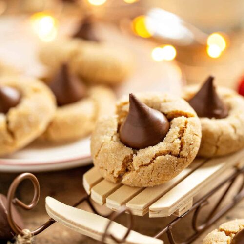 Honestly, it is hard to beat eating one of these warm right off the cooling rack! But if you want to make an event out of it, serve your Peanut Butter Blossoms alongside a tall, ice-cold glass of whole milk. They are also absolutely incredible paired with a steaming mug of hot chocolate or your morning cup of coffee. If you are hosting a holiday party, these look gorgeous arranged on a massive dessert platter next to some no-bake butterscotch haystacks, rich chocolate fudge, and classic sugar cookies.