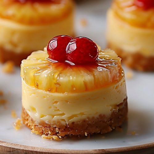 Think of pineapple upside down cheesecakes as a grown-up mash-up: the bottom is a caramel-tinted layer of pineapple rings or chunks, and the top is a silky cheesecake batter that bakes into a smooth, creamy slice. It’s essentially cheesecake married to the retro charm of upside-down cake. The crust isn’t a cookie or graham crust; instead, the caramelized pineapple bottom acts as both flavor booster and bottom crust, giving a glossy, fruity contrast to the tangy Cream Cheese. This dish draws its name from that classic upside-down technique—when you invert the cake after it cools, the pineapple ring topping lands on top, gleaming with a kiss of caramel. It’s a dessert you can proudly serve to guests and still feel like you whipped it up on a weeknight. Pineapple upside down cheesecakes welcome a little improvisation, too—swap in maraschino cherries for color, or splash a tropical twist with coconut milk in the batter. It’s essentially a celebration in a pan that travels beautifully from fridge to table.