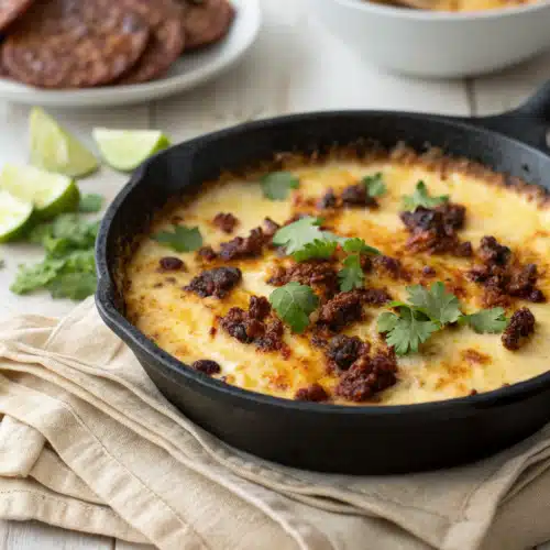 I remember the first time I had real queso fundido at a tiny family-owned spot in Mexico City. The cheese was perfectly browned on top, the chorizo added this incredible smoky richness, and the warm flour tortillas made it a complete experience. Ever since then, I’ve been on a mission to recreate that exact flavor at home. After countless tweaks, burned cheese incidents, and taste tests, I’ve finally nailed it. If you want to be the MVP of your next taco Tuesday or game day party, this is your secret weapon.