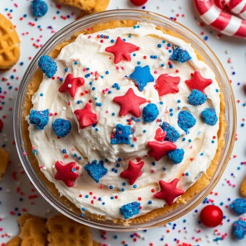 If, by some miracle, you have any Red White Blue Funfetti Dip leftover, storing it is a breeze. For room temperature storage, it’s best to keep it covered with plastic wrap for no more than a couple of hours, especially if it’s warm out. The cream cheese can start to soften too much otherwise. If you need to store it longer, refrigerator storage is your best bet. Transfer the dip to an airtight container. It should stay fresh and delicious in the fridge for about 3-4 days. The texture might firm up a bit in the fridge, so before serving leftovers, just give it a good stir to loosen it up. I sometimes add a tiny splash of milk or cream if it seems a bit too stiff. As for freezer instructions, I generally don’t recommend freezing this dip. The texture of the cream cheese can change significantly once thawed, becoming a bit grainy. It’s best enjoyed fresh! If you do decide to freeze a small portion, make sure it’s in a freezer-safe airtight container and thaw it slowly in the refrigerator overnight. For glaze timing advice, well, this dip doesn’t have a glaze! That’s part of its charm and simplicity. You serve it as-is. If you wanted to add something, a drizzle of melted white chocolate or a dusting of powdered sugar could be pretty, but honestly, it’s perfect just the way it is.
