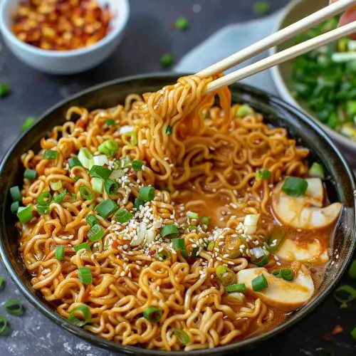 This saucy ramen noodles recipe has become a bright thread in the fabric of my week. It’s not about perfection; it’s about balance, comfort, and the little surprises you discover while cooking—like how a touch of almond milk can soften the glaze without losing that lacquered shine, or how a handful of greens adds a pop of color that makes the whole bowl feel alive. It’s the dish I turn to when I want something familiar but a little adventurous, a meal that invites conversation and a shared smile across the table. If you try it and tweak it to your liking, please tell me what you changed. I love hearing about your substitutions, your favorite toppings, and the ways your family reacts to that first glorious slurp. Happy cooking, and I can’t wait to hear how yours turns out!