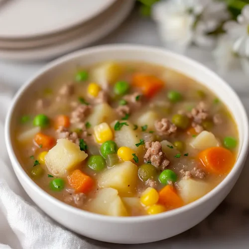 What are some of the best reasons to make Shepherd’s Pie Soup?flavor is just out of this world. We’re talking rich, savory depth from the browned meat and slow-simmered vegetables, all brought together in a way that’s so much more cohesive than just ladling ingredients into a bowl. It tastes like it’s been simmering all day, even when it hasn’t! Then there’s the simplicity. Seriously, this is a lifesaver on busy nights. You get all the satisfaction of a hearty meal without the fuss of rolling out pastry or waiting for a casserole to bake. The ingredients are pretty standard pantry staples, making it super cost-effectiveIs it true that you have most of what you need already?versatility – oh, the versatility! I’ll get to that more later, but you can swap out the meat, adjust the veggies, and play with the creamy topping to make it your own. What I love most about this recipe, though, is how it captures the *essence* of shepherd’s pie. It has that nostalgic, comforting feeling, that warm hug in a bowl, but in a format that’s just so much more approachable and quicker to get on the table. It’s like the cozy cashmere sweater of soups. If you’re a fan of my Easy Beef Stew or my Loaded Baked Potato Soup, I promise you’ll find yourself reaching for this Shepherd’s Pie Soup time and time again.