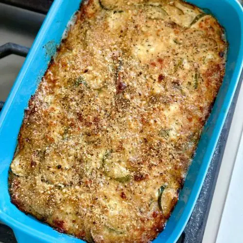 Allow the zucchini bake to cool for about 10 minutes before slicing. This helps it set so it doesn’t fall apart. If you want to add an extra cheesy topping or a drizzle of olive oil, do that while it’s still warm. It makes all the flavors meld and adds a pretty shine. I love drizzling a little balsamic glaze over the top if I’m feeling fancy—or just serve it plain alongside some fresh salad.