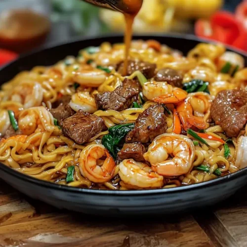 You know those nights? The ones where you’re staring into the fridge, the clock is ticking, and the thought of a complicated meal makes you want to just order takeout? Yeah, I’ve been there more times than I can count. But then, there are those other nights, the ones where a craving hits, a specific flavor pops into your head, and you *need* something delicious, something satisfying, something that feels a little bit special but is surprisingly easy to pull off. For me, that’s where these Steak and Shrimp Noodles come in. Seriously, this dish is pure magic. It’s got the tender chew of perfectly cooked noodles, the savory richness of steak, the sweet pop of shrimp, all coated in this incredible, slightly tangy, deeply flavorful sauce that just… well, it just makes everything right in the world. It’s one of those meals that feels like a treat, a restaurant-worthy indulgence, but I can whip it up on a Tuesday night without breaking a sweat. I remember the first time I made it; my husband took one bite and his eyes just lit up. That’s when I knew I’d stumbled onto something truly good. It’s not quite a stir-fry, not quite a pasta dish, but it’s something wonderfully in-between, and it’s become my absolute go-to when I need a guaranteed win.