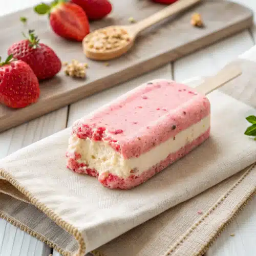 I don’t know about you, but my absolute favorite childhood summer memory involves sprinting down the street after the neighborhood ice cream truck. I always, without fail, ordered the exact same thing: that iconic strawberry crunch bar on a stick. You know the one. It had that magical, buttery, fruity crumble on the outside and a creamy center that melted all over your hands before you could finish it.
