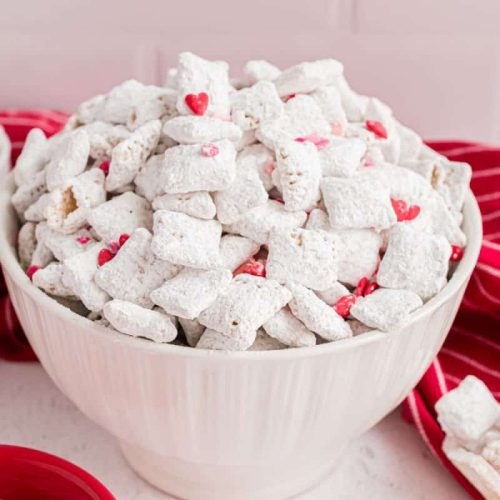 Keeping Cherry Puppy Chow fresh is easy, but a few tips help it stay crispy and delicious. Once cooled, store it in an airtight container or zip-top bag. At room temperature, it will stay crispy for about 2-3 days—just make sure it’s in a dry, cool place. If your house tends to be humid, pop it in the fridge — it’s fine for up to a week, but the texture might soften slightly. For longer storage, freeze it tightly wrapped, and it’ll keep for up to 3 months. Just thaw at room temperature for a few minutes before serving again.