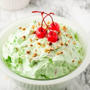 When you’re ready to serve, give the Watergate salad a gentle stir. Spoon it into a pretty serving bowl or individual dishes. You can garnish it with a few extra cherries or a sprinkle of nuts if you like. And that’s it! You’ve got a stunning, delicious, and incredibly easy Watergate salad ready to be devoured. It’s the perfect addition to any meal or a fantastic dessert all on its own.